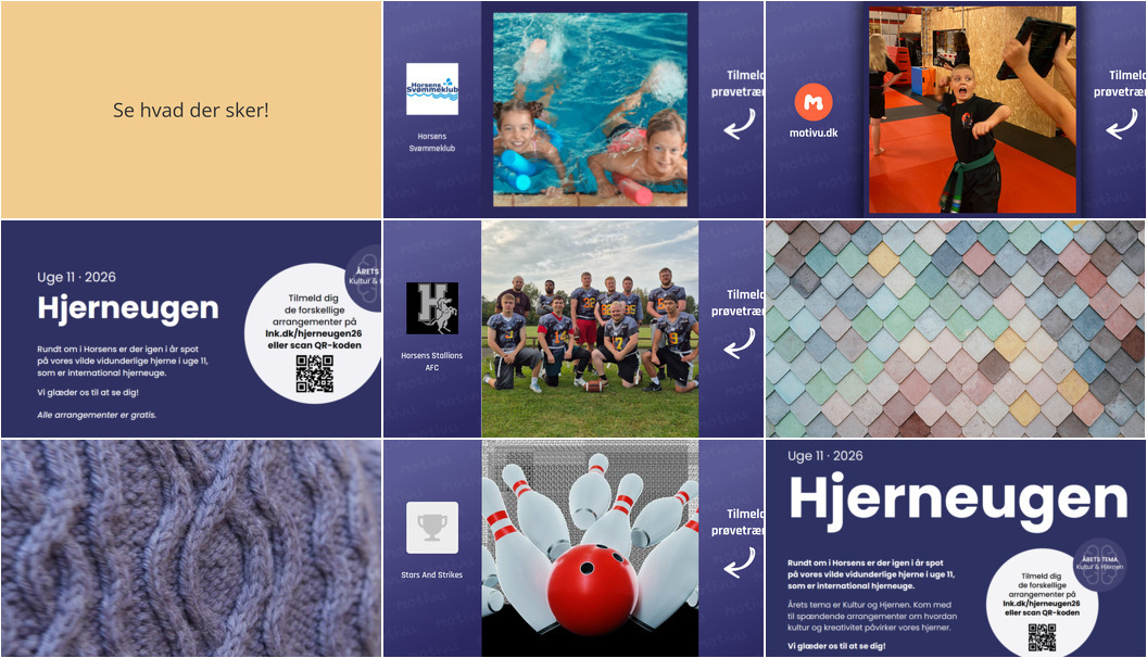 I uge 11 er der en række arrangementer og aktiviteter i Horsens, der byder på både motion, læring og kreativitet!
