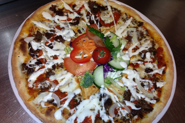 Er du mere til pizza? Intet problem! En af de mest populære valgmuligheder er deres salatpizza (nr. 12), der serveres med kebab, salat, agurker, tomater og dressing.
