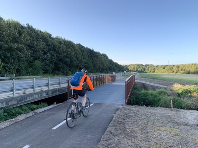 - At vi på strækningen har haft mulighed for at etablere en dobbeltrettet cykelsti på én side af Skanderborgvej har økonomisk set desuden den fordel, at vi blandt andet har kunnet nøjes med to i stedet for fire broer, hvor stien krydser åerne, siger Allan Lyng Hansen, som konkluderer, at denne løsning endvidere har været den tidsmæssigt mest optimale at anlægge.
