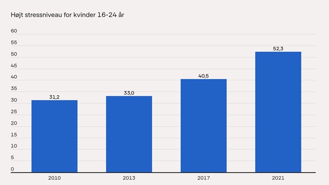 Mens over halvdelen af kvinder i kategorien medgiver at have et "højt stressniveau".