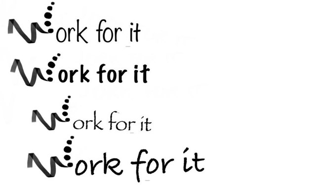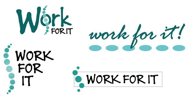 2. "Anden fase af udviklingen af logo til Work for it. Desværre følte jeg at det så mere ud som om der stod "Nork for it"."